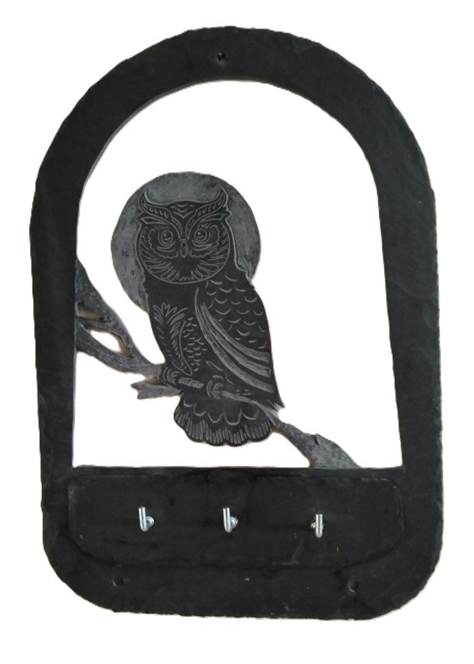 Porte-clés mural en ardoises rustiques et naturelles de 22 cm par 22 cm. Gravé à la main. 100% fait main